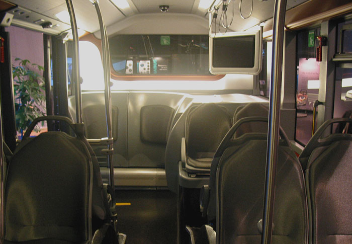 gehören das Beleuchtungselement in der Heckwand sowie mehrere Informationsbildschirme im Fahrgastraum.
