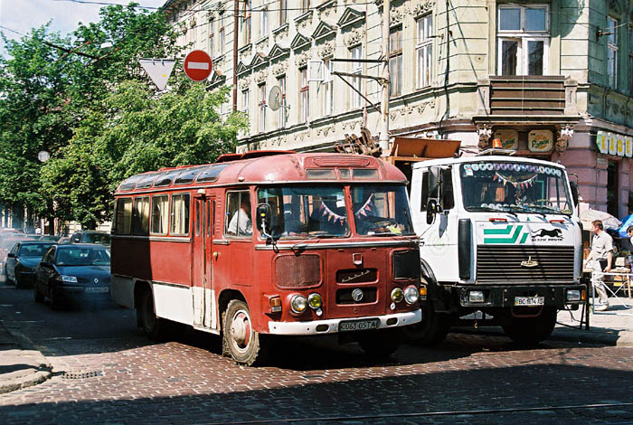 Ukraine - Lviv (2007): Der PAZ startet an der Ampel durch.