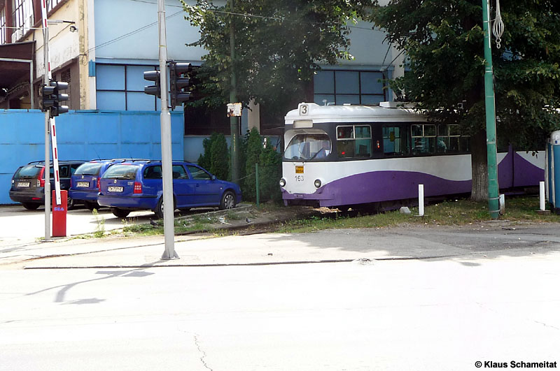 Tw 163 (ex Karlsruhe) verlässt die Wendeschleife am Nordbahnhof.
