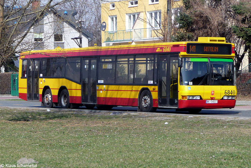 Wagen 6840, ein Neoplan N 4020, an der Endhaltestelle in Okęcie.