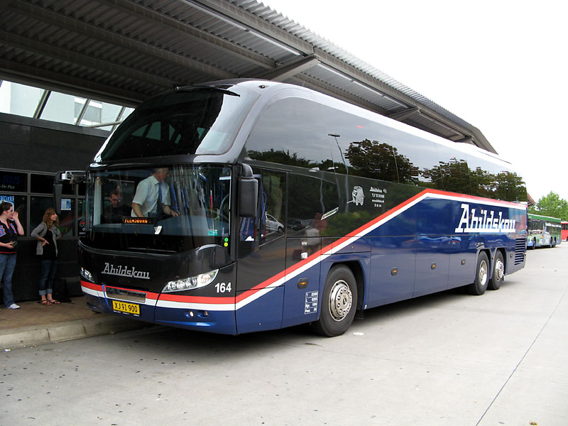 Bei Abildskous Rutebiler mit Sitz im dänischen Århus sind in den letzten Monten vier Neufahrzeuge vom Typ Neoplan N 1218 HDL (Cityliner) eingetroffen. Wagen 161 (XJ 94 312) und 162 (XJ 94 313) wurden im Juni, Wagen 163 (XJ 91 901) und 164 (XJ 91 900) im September erstzugelassen. Im Bild ist der Wagen 164 am Zentralen Omnibus-Bahnhof in Flensburg zu sehen.