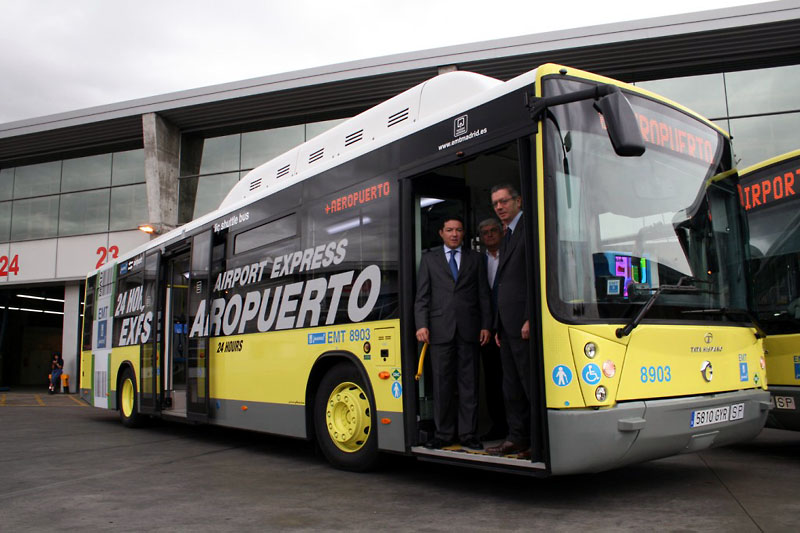 Im spanischen Madrid wurde die neue Busverbindung zum Flughafen Madrid-Barajas eröffnet. Zum Einsatz kommen 12 neue Tata Hispano Habit mit Erdgasantrieb. Die Neufahrzeuge basieren auf einem Irisbus-Fahrwerk und erreichen mit dem Iveco-Aggregat die EEV-Abgasnorm. Sie erhielten eine spezifische gelbe Lackierung, sowie die Beschriftung "Express Aeropuerto" auf den Seitenfenstern. Die Expresslinie resultiert aus der Zusammenführung der ehemaligen Buslinien 200 und 204. Die Flughafenlinie wird täglich rund um die Uhr im 15-Minuten-Takt befahren. Die Fahrt dauert 40 Minuten und kostet nur 2 Euro. Die Trasse ist 22 Kilometer lang und führt über die Flughafen-Terminals T1, T2 und T4.