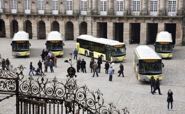 Im spanischen Santiago de Compostela wurden fünf neue Midibusse vom Typ Castrosua City Versus Midi in Betrieb genommen. Die Linienbusse basieren auf einem 10,8 Meter langen MAN A22-Fahrwerk. Die Bilder von Castrosua-Carsa zeigen die Neuzugänge am Plaza del Obradoiro in Santiago del Compostela am 08.02.2011.
