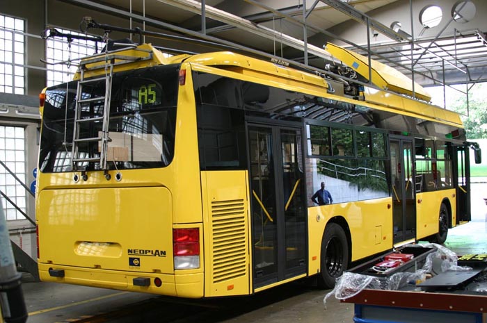 Am vergangenen Samstag, dem 12.07.2003, wurde der erste von 91 Trolleybussen vom neuen Typ Neoplan/Kiepe N 6216 für Athen nach Solingen überführt. Das gelb lackierte Fahrzeug, noch ohne weitere farbliche Gestaltung und ohne Schriftzug des zukünftigen Eigentümers, wurde im Auftrag der Firma Vossloh Kiepe GmbH (vormals Kiepe Elektrik) zum Betriebshof der Stadtwerke Solingen GmbH Center Verkehr transportiert, dort finden derzeit umfangreiche Tests an der Elektrik statt. Netzfahrten sind nicht geplant. Grund für den Einbau und den Test in Solingen ist die langjährige und erfolgreiche Kooperation von Kiepe mit den Solinger Verkehrsbetrieben.