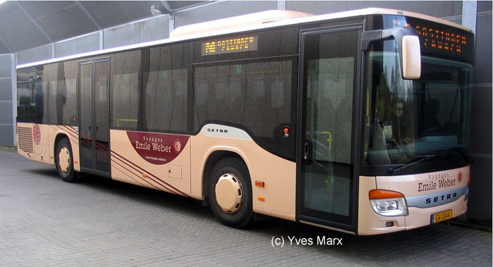 Die Firma Voyages Emile Weber aus Canach (Luxemburg) hat zwei neue Busse in Betrieb genommen. Dabei handelt es sich zum Einen um einen Überlandbus vom Typ VDL Bova Lexio mit der Türanordnung vM, der auf der Linie 118 (Trier - Luxembourg) eingesetzt wird. Die Besonderheit ist, dass zumindest zu den Hauptverkehrszeiten ein Personenanhänger des Herstellers Hess mitgeführt wird. Der gesamte Zug bietet 95 Sitzplätze. Die Zulassung des Zugfahrzeugs lautet EW 1258, die des Anhängers vermutlich EW 1259.