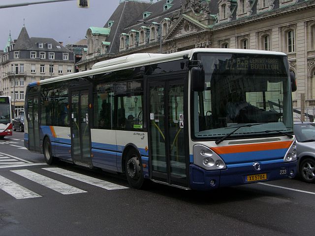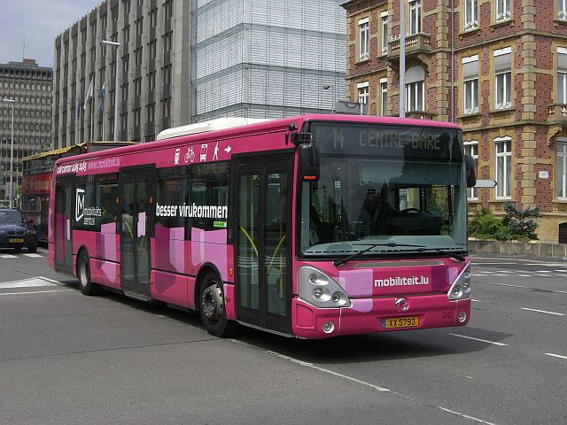 Der Busbetrieb der Stadt Luxemburg (AVL) hat bereits im Januar zehn Solobusse vom Typ Irisbus Citelis S mit EEV-Motor in Dienst gestellt. Die Busse tragen die Nummern 233 bis 242 und die Kennzeichen XX 5784 bis XX 5793. Damit hat der AVL in den letzten drei Jahren insgesamt 30 Busse dieses Typs erhalten, wovon die Serie aus dem Jahr 2006 (213 bis 222) zweitürig und die Serien aus 2007 (223 bis 232) und 2008 dreitürig sind. Die Bilder zeigen den ersten und den letzten Wagen der aktuellen Serie, wovon der Wagen 242 eine Ganzwerbung für die neue Mobilitätszentrale ("Mobiliteitszentral") im Luxemburger Bahnhof erhalten hat.