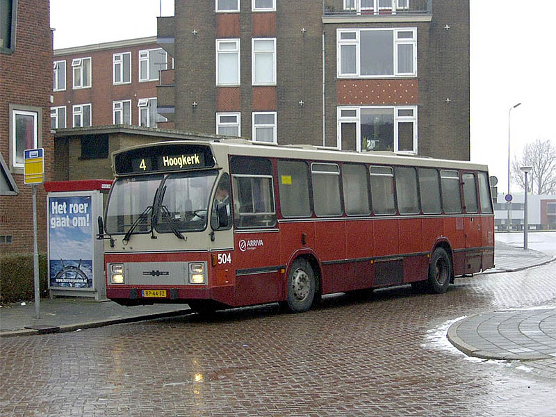 In Groningen (NL) ging am 07.07.2003 eine Ära zu Ende. Die letzten hellroten DAFs SB201DKDL554 mit Hainje-Aufbau (Serie 501-...-519) wurden aus dem Verkehr genommen und am 11.07.2003 wurden sechs der "alten" mit den Nummern 504, 505, 509, 511, 513 und 515 aus Groningen zu einem provisorischen Lagerplatz abtransportiert. Nur die 518 war am 13.07.2003 noch in Groningen.