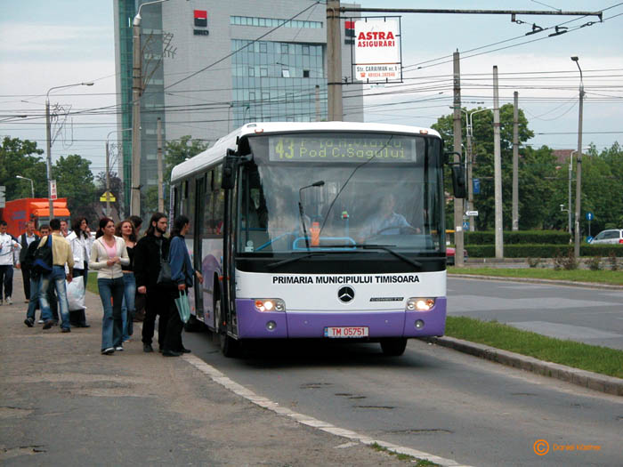 Die Regia Autonoma Transport Timisoara (R.A.T.T.), das örtliche Nahverkehrsunternehmen der Stadt Timisoara (ein Staatsbetrieb), erhielt Mitte Mai die ersten von insgesamt 50 EvoBus MB O 345 (Conecto) in Stadtausführung. Die Omnibusse sollten in den ursprünglichen Hausfarben Gelb lackiert werden, dies wurde aber laut eines Zeitungsberichtes von Mercedes abgelehnt, so dass es zur etwas bunten Lackierung kam. Die Reklame an der Heckseite ist auf allen Fahrzeugen angebracht und zeigt den Hauptinvestor - die BRD, eine rumänische Großbank - rechts sowie eine Leasinggesellschaft links.