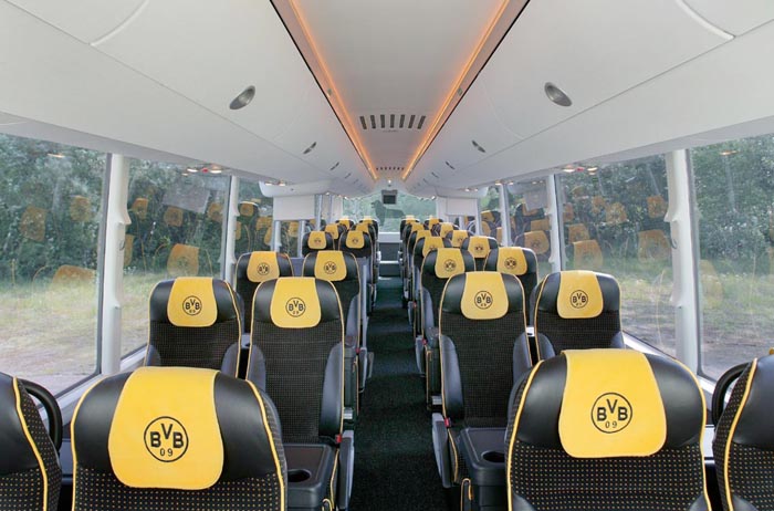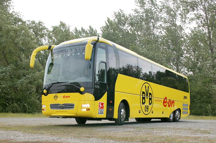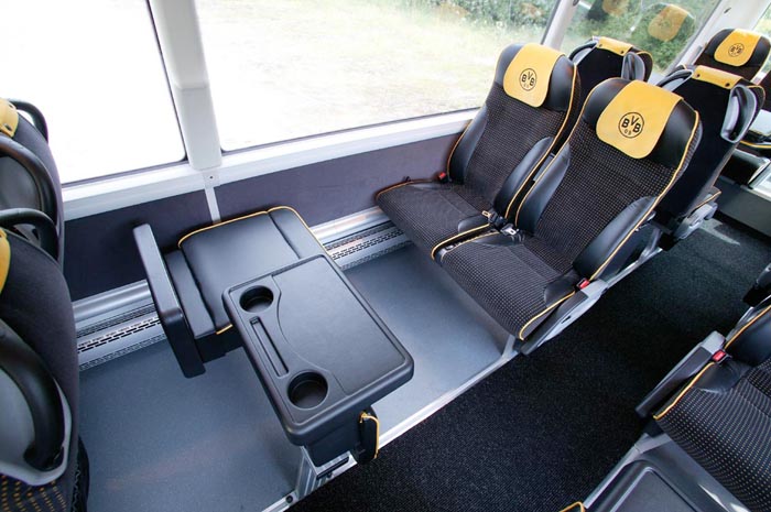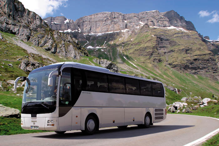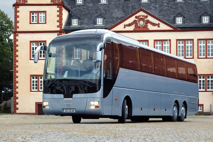 Ebenfalls ein guter Bekannter ist der gezeigte MAN Lion's Coach L, ein Reisebus der Mittelklasse, der sich immer größerer Beliebtheit erfreut. Er überzeugt durch sein stimmiges und modernes Design und die bewährte Technik unter dem schicken Kleid. Gerade in der gezeigten Dreiachs-Version mit 57 Sitzen ist der Hochdecker konsequent auf ein gutes Preis-/Leistungsverhältnis und besten Nutzwert ausgelegt. Dem Fahrer kommen die kräftige Maschine mit 460 PS (MAN D2876 LOH 03) und das gut schaltbare Sechsgang-Getriebe ebenso zu Gute wie das überaus durchdachte und fahrerzentrierte Cockpit. Die aufwändige EBS-Bremsanlage ist darüber hinaus mit dem hier optional erhältlichen elektronischen Stabilitätsprogramm ESP ausgerüstet und sehr gut dosierbar