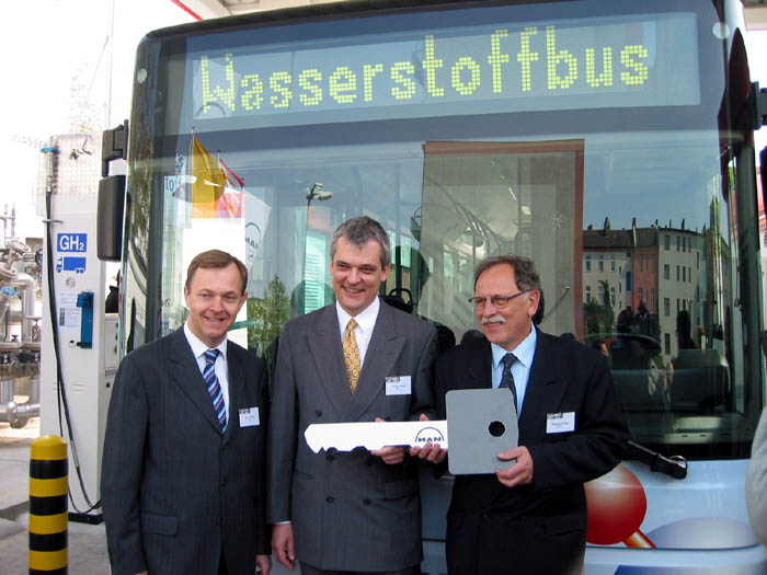 Auch der Vorstandsvorsitzende der MAN Nutzfahrzeuge AG, Anton Weinmann, äußerte sich erfreut über die Erweiterung des Wasserstoffprojektes in der bayerischen Hauptstadt München: „Wasserstoff hat hervorragende Voraussetzungen, im Öffentlichen Personennahverkehr der Treibstoff der Zukunft zu werden. Die MAN Nutzfahrzeuge AG ist schon seit Anfang der Neunziger Jahre ein Vorreiter in der Forschung mit Wasserstoffantrieben, was seit 1999 auf besonders anschauliche Weise dem internationalen Publikum auf dem hiesigen Flughafen demonstriert wird. Dabei beschreiten wir zwei technische Wege, die sich als tragfähig erwiesen haben: Erstmals weltweit testen wir hier in einem Projekt sowohl einen weiterentwickelten Hybrid-Brennstoffzellenantrieb als auch den Wasserstoff-Verbrennungsmotor. Damit setzt sich MAN an die Spitze der Entwicklung von alternativen Antrieben."
