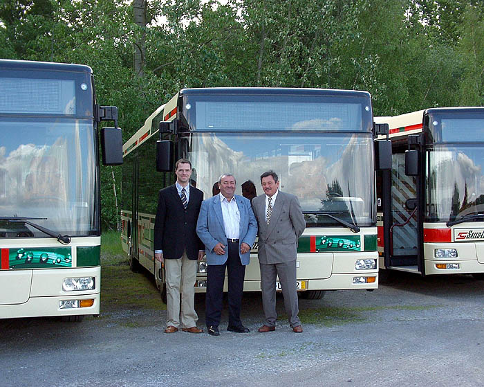 Aus den Händen von Dr. Günther Krawitz, Geschäftsführer der MAN Bus GmbH, erhält in Salzgitter der Geschäftsführer der Unternehmensgruppe Mundstock, Georg Hohmann, die Schlüssel für die neuen MAN-Linienbusse - verbunden mit den besten Wünschen für eine allzeit unfallfreie Fahrt. In der technischen Ausführung sind die für die Firmen Kraftverkehr Mundstock GmbH und Magdeburger Buslinie GmbH bestimmten MAN-Niederflurlinienbusse NL 263 gleich.