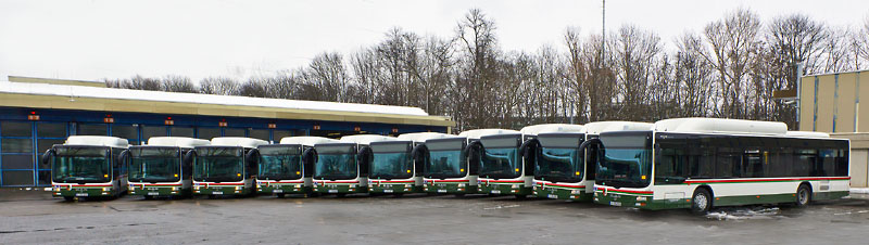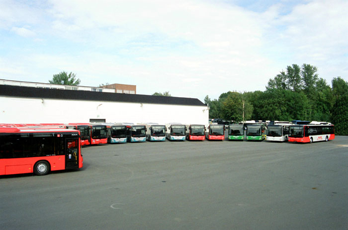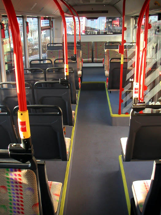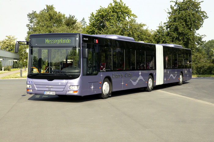 Dem tragen die Verantwortlichen nun Rechnung und ordern 19 Solobusse vom Typ MAN Lion's City und 27 Gelenkbusse vom Typ MAN Lion's City G. Die Innenausstattung der Busse in strapazierfähiger Edelstahl-Optik ist für eine hohe Passagierkapazität Stehplatz-optimiert (vier Personen/qm). So verfügen die Solobusse über 67 Fahrgastplätze, die Gelenkbusse können jeweils bis zu 100 Personen befördern. Leistungsfähige Klimaanlagen garantieren in allen Fahrzeugen, unabhängig von der Jahreszeit, einen hohen Fahrgastkomfort. Eine Absenkeinrichtung (Kneeling) erleichtert das Ein- und Aussteigen der Passagiere. Effiziente MAN Common-Rail-Dieselmotoren mit 206kW (280PS) bei den Solobussen beziehungsweise 235kW (320 PS) bei den Gelenkbussen erfüllen die anspruchsvolle Emissionsnorm EEV. Ein Voith 4-Gang-Automatikgetriebe mit Sensotop-Steuerung und integriertem Retarder gibt die Kraft an die Antriebsachsen weiter.