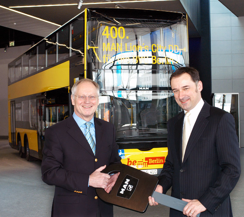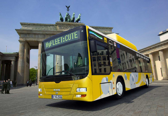 In Berlin gehören umweltfreundliche Wasserstoff-Busse künftig zum alltäglichen Stadtbild. In Anwesenheit von Bundesumweltminister Sigmar Gabriel übernahmen die Berliner Verkehrsbetriebe BVG am 1. Juni 2006 die ersten beiden mit Wasserstoff betriebenen MAN-Stadtbusse des Typs „Lion's City" als 12 m lange Eindecker. Im Rahmen des zu Beginn des Jahres gestarteten Projekts HyFLEET:CUTE wird die BVG in den kommenden zwei Jahren 14 MAN-Busse mit Wasserstoff-Verbrennungsmotoren erhalten und damit die weltweit größte Flotte von umweltfreundlichen Wasserstoffbussen betreiben. In dem von der EU-Kommission unterstützten Projekt sollen die Busse bis zum Jahr 2009 im Berliner Linienverkehr fahren. Ihren ersten Einsatz erhalten die ersten beiden Busse bei der Fußball-WM.
