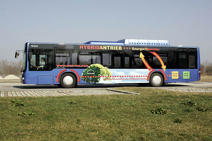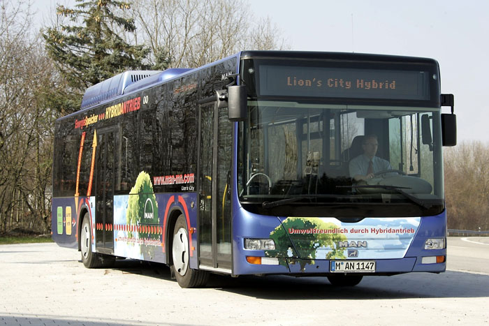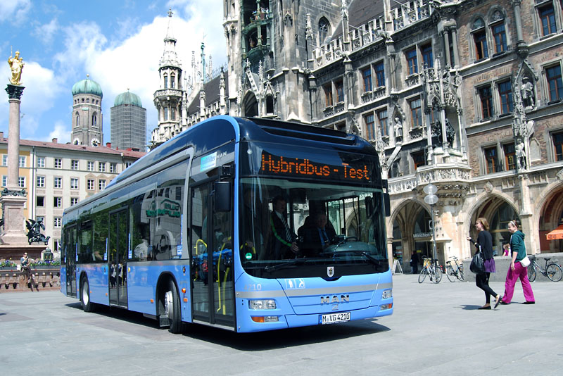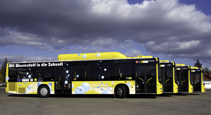 Der erste Einsatz eines Busses mit Verbrennungsmotor begann 1996 in München und Erlangen. Mitte 1999 startete MAN mit der Erprobung von drei Niederflur-Gelenkbussen mit Druckwasserstoffspeicherung im Personentransport auf dem Vorfeld des Flughafens München, wo drei Busse bereits mehr als 450.000 Kilometer zurückgelegt haben. Das so genannte „H2argemuc-Projekt" wurde vor kurzem im ÖPNV mit zwei Fahrzeugen auf das Umfeld des Flughafens ausgedehnt. Hier kommt auch der neueste MAN Hybrid-Brennstoffzellenbus mit modernen NiMH-Batterien als Energiespeicher zum Einsatz.
