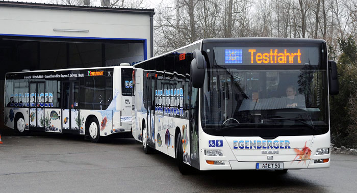 Zehn neue Niederflur-Erdgasbusse vom Typ MAN Lion's City CNG nahmen die Stadtwerke Augsburg in Betrieb. Damit sind 102 Omnibusse mit dem umweltschonenden Erdgasantrieb (CNG) in Augsburg unterwegs. „Dies ist ein weiteres Bekenntnis der Stadtwerke zum umweltfreundlichen Kraftstoff Erdgas", sagte Stadtwerke-Geschäftsführer Norbert Walter anlässlich der Übergabe der neuen Fahrzeuge. Seit 2010 sind die Stadtwerke Augsburg der einzige deutsche Verkehrsbetrieb einer Großstadt, der ausschließlich mit Erdgas fährt. Und mit dem Bio-Erdgas, das die Stadtwerke an ihren Zapfsäulen anbieten, werden CO2 und Treibhausgase gegenüber Benzin oder Diesel um 90 Prozent reduziert.
