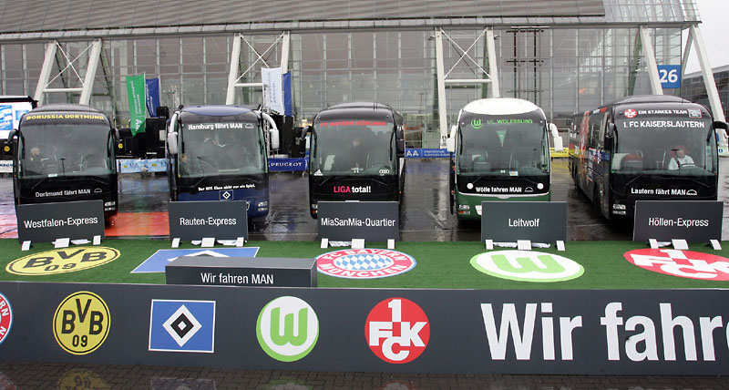 MAN-Busse sind bei zahlreichen Spitzen-Fußballmannschaften in Europa und Lateinamerika sowie bei Bundesliga-Teams im deutschen Eishockey und Basketball im Einsatz: Unter anderem vertrauen der AC Mailand und FC Chelsea auf MAN, auch die brasilianische Nationalmannschaft und die 15 Erstligisten der brasilianischen Fußballliga sind mit MANschaftsbussen unterwegs. In Deutschland fahren zehn von 18 Mannschaften der Fußball-Bundesliga mit Bussen des Münchner Dax-30-Konzern sowie in München das Basketball-Team des FC Bayern und die Fußballer von 1860 München.