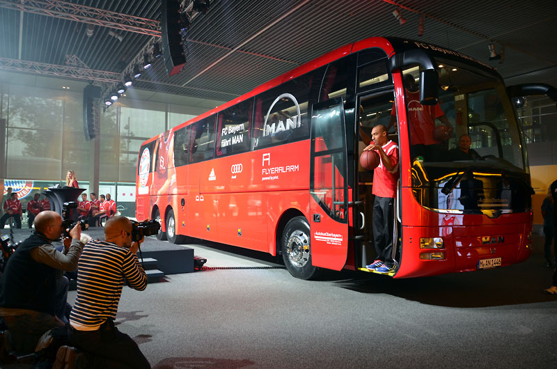 Die Korbjäger des FC Bayern München Basketball können sich auf MAN als neuen starken Partner verlassen. MAN ist bereits seit 2008 Premium-Partner des Fußball-Bundesligisten FC Bayern München und unterstützt nun auch das Basketballteam des Sportvereins um Erfolgstrainer Dirk Bauermann. Als Teil der Vereinbarung stellt das Münchner DAX-30-Unternehmen einen exklusiv ausgestatteten MAN Lion´s Coach als Mannschaftsbus zur Verfügung, der die Basketball-Künstler komfortabel durch die Saison bringt. Dr. Frank Hiller, Vorstand Marketing, Sales & Services bei MAN Truck & Bus, überreichte Spielern und Trainer im Beisein von FC Bayern München Präsident Uli Hoeneß den neuen Reisebus im MAN Forum. Damit fahren jetzt sämtliche Münchner Bundesliga-Teams im Fußball (FC Bayern, 1860 München), Basketball (FC Bayern) und Eishockey (EHC München) mit Mannschaftsbussen von MAN zu ihren Auswärtsspielen.