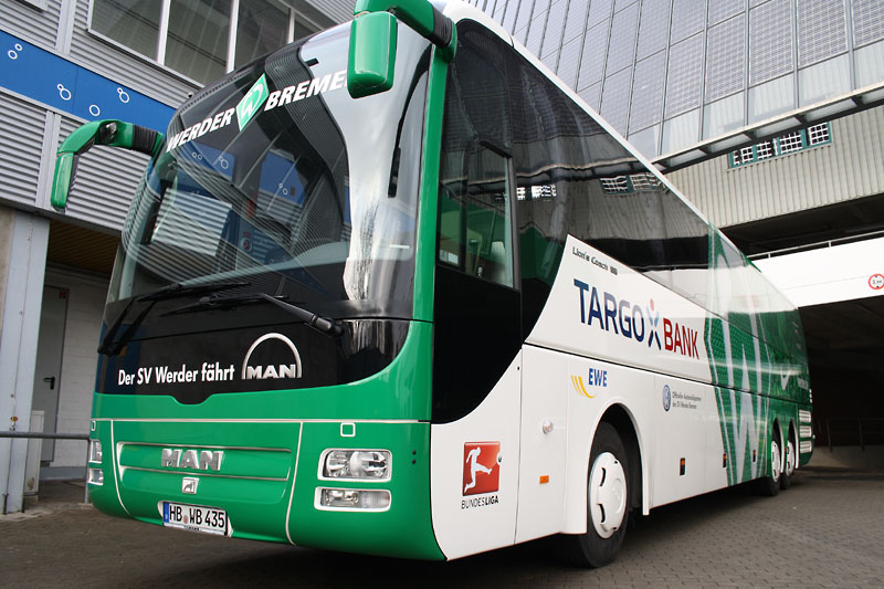 Ein exklusiver Reisebus des Typs MAN Lion's Coach L bringt nun Trainer Thomas Schaaf und seine Mannschaft entspannt und sicher an ihre Spielorte. Die MAN Truck & Bus Deutschland GmbH ist damit, zunächst bis 2015, offizieller Buspartner des SV Werder Bremen. Thomas Schaaf freut sich über den Neuzugang: "Wir haben jetzt mit dem MAN einen Mannschaftsbus, der bei Leistung und Ausstattung keine Wünsche offen lässt." Maßgebend für diese Partnerschaft waren auch regionale Marketingaspekte des MAN Vertragspartners Tiemann Truck & Bus GmbH mit Sitz in Bremen.