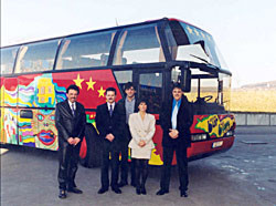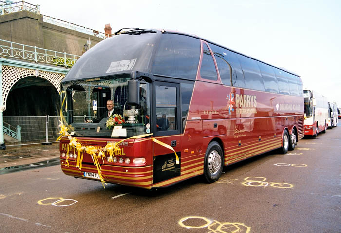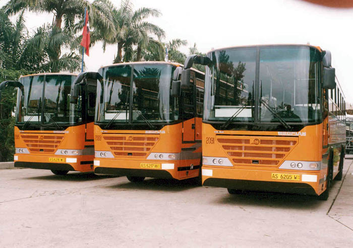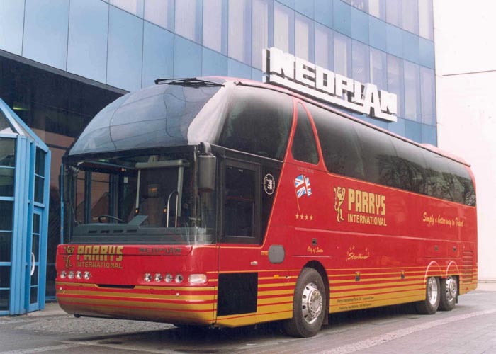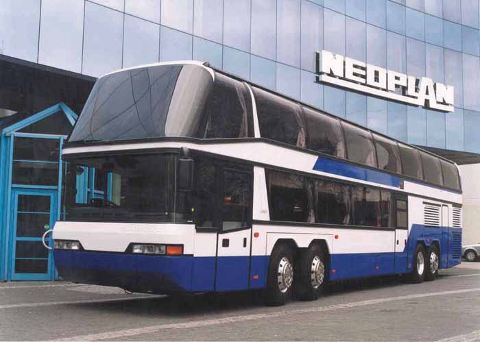 Anfang 2001 lieferte die NEOPLAN Bus GmbH bereits zwei Prototypen des Dreiachsers in auffälliger Multicolor-Lackierung zur Einführung des Euro III - Motors nach Hongkong. Diese Fahrzeuge überzeugten KMB, so dass der größte Busbetreiber Hongkongs nun 30 weitere Fahrzeuge dieses Typs in Auftrag gegeben hat - allerdings in der bewährten goldmetallic-Lackierung.