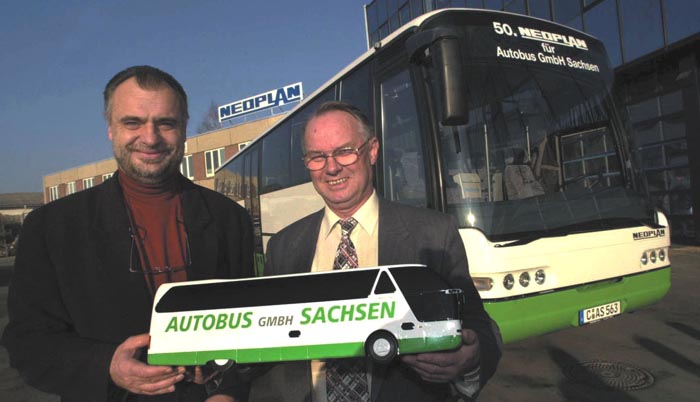 Auf dem Inlands-Omnibusmarkt ist Neoplan mit einem Absatz von 821 Fahrzeugen und einem Marktanteil von 15% seit Jahren eine feste Größe. Das Kerngeschäft bilden weiterhin die hochwertigen Reisebusse mit einem Anteil von rund 30% am Gesamtmarkt. Außerdem konnte man im vergangenen Jahr mit der Lieferung von 68 Niederflur-Linienbussen an den Städteverbund KÖR (Kooperation östliches Ruhrgebiet) auch wieder einen größeren Auftrag Linienbusse vom Typ Centroliner gewinnen. Ein wesentlicher Beitrag an der erfreulichen Gesamtentwicklung leistet das Export-Geschäft, dessen Quote weiter über 50% liegt. Im vergangenen Jahr wurden insgesamt 140 Linien-Doppeldeckerbusse nach Hongkong geliefert. Äußerst erfolgreich entwickelte sich darüber hinaus das Geschäft mit internationalen Lizenznehmern. Die Lieferungen von CKD-Bausätzen nach USA, China, Ghana, und in den Iran verzeichnen erfreuliche Steigerungsraten. Die Internationale Nutzfahrzeuge-Ausstellung IAA bescherte dem Unternehmen den erwarteten Auftragsschub. Neoplan verfügt derzeit über einen im Vergleich zum Vorjahr stabilen Auftragsbestand, der die Auslastung der Betriebe in Stuttgart, Pilsting, Berlin, Ehrenhain und Plauen bis zur Sommerpause sichert. NEOPLAN wird Anfang Mai anläßlich seiner Bilanzpressekonferenz ausführlich zum Geschäftsjahr 2000 informieren.