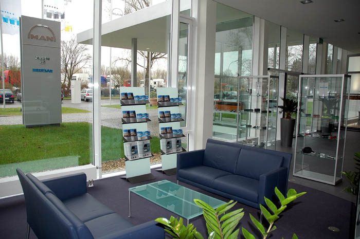 Mit dem neuen Bus Forum eröffnet MAN Nutzfahrzeuge in München ein repräsentatives Schaufenster und Auslieferungszentrum für die Busse der Marken NEOPLAN und MAN. Das Bus Forum rundet das neue moderne Gesicht der MAN Nutzfahrzeuge Unternehmenszentrale an der Dachauer Straße ab und schafft eine professionelle und attraktive Plattform für Information und kompetente Beratung der Bus-Kunden. In dem Gebäude, das sich in Architektur und Materialität am benachbarten Truck Forum orientiert, sind auf einer Gesamtfläche von rund 3.200 qm eine Fahrzeugausstellung, die Fahrzeugauslieferung sowie das Markenforum für MAN-Busse und NEOPLAN integriert.