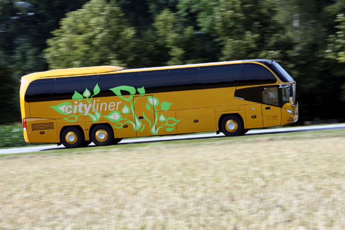 Seit 75 Jahren fährt NEOPLAN von Meilenstein zu Meilenstein und bewegt mit innovativen Ideen den Fortschritt – sei es als Erfinder des Reise-Doppeldeckers, als Vorreiter der Niederflurtechnologie oder als Entwickler der 15-Meter-Klasse. Eine Pionierleistung des Busbaus war auch der erste Reisehochdecker Europas: der Cityliner, der 1971 eine Erfolgsgeschichte startete, die bis heute anhält. Jetzt setzt NEOPLAN erneut ein Highlight: Die exklusive Cityliner Jubiläumsedition „Spirit Edition" zum 75. Geburtstag wartet mit hochwertigen Besonderheiten in Design, Komfort und Sicherheit auf. Mit einer Sonderlackierung in Silbermetallic und hochwertigen Aluminiumfelgen wird das markante und dynamische Cityliner-Design nochmals aufgewertet. Im Interieur sorgen Fußboden in Edelholzoptik, Handläufe und Haltegriffe in Edelstahl sowie die Bestuhlung mit komfortablen Leder- oder Stoffpolstern und einem speziellen Nahtbild für ein besonders edles Ambiente. Auch der Fahrer wird merken, dass er einen ganz besonderen Bus steuert: Das Cockpit der Ausstattungslinie NEOPLAN Individual mit Multifunktionslenkrad in zweifarbigem, handgenähtem Leder lässt keine Wünsche offen.