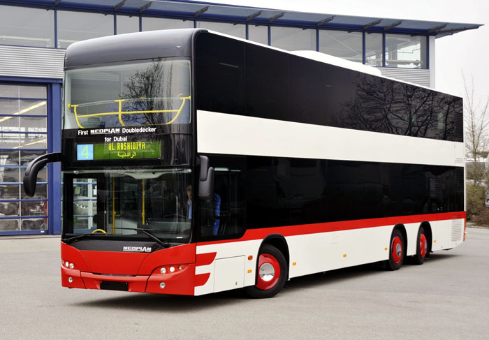 Unter der Produktlinie NEOPLAN „Individual" werden auch in Zukunft individuelle Kundenwünsche bedient, sei es aus eigener Fertigung oder in partnerschaftlicher Zusammenarbeit mit zertifizierten Aus- und Aufbauern. Dies wird auf der IAA selbst mit einem hochwertigen Starliner Exponat mit Holzboden und exklusiver Dreierbestuhlung deutlich dokumentiert. Als feste Größe des NEOPLAN Produktprogramms rundet der seit 40 Jahren auf den Straßen Europas bekannte und erfolgreiche Doppeldecker Skyliner sowie bereits auf der Vorpresse-Konferenz der neue NEOPLAN Tourliner als 13,26 Meter Variante das Programm der Ausstellung ab. Hier wird zudem erstmals der NEOPLAN Liniendoppeldecker für Dubai gezeigt, der seit Frühjahr 2008 ausgeliefert wird und gleichfalls die jahrzehntelange Doppeldecker-Kompetenz des Konzerns belegt.
