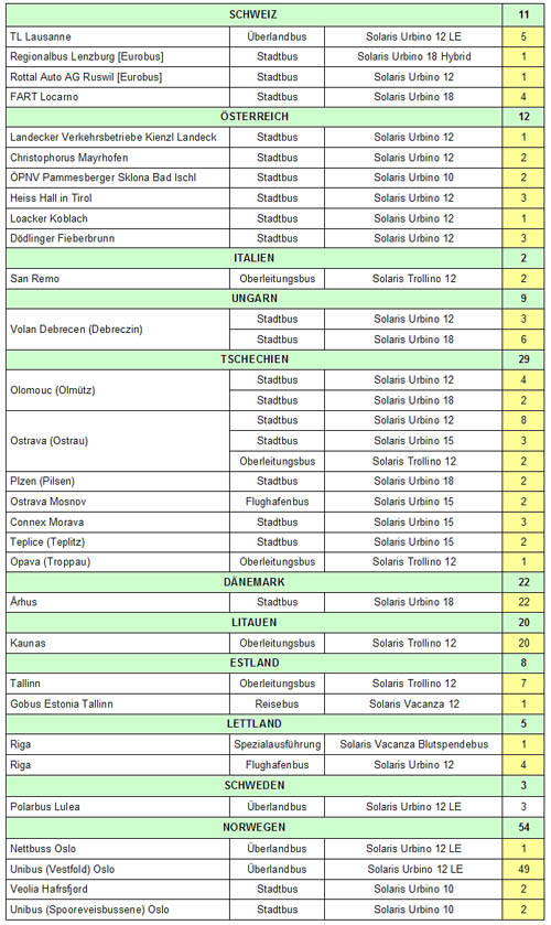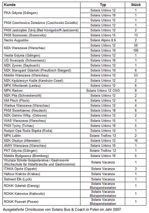 In Polen haben Kraków, Tychy, Jaworzno, Gdynia, Augustów, Poznañ und Bielsko-Bia³a die Solaris-Busse bestellt.