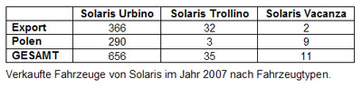 "Es war ein sehr wichtiges, um nicht zu sagen, ein entscheidendes Jahr für unsere Firma" - sagte der Geschäftsführer der Solaris Bus & Coach, Krzysztof Olszewski. "Zum ersten Mal erreichte der Exportanteil mehr als 50% in der Verkaufsstruktur. Wir haben zwei neue Omnibustypen eingeführt - den Solaris Urbino 10 und den Solaris Valetta. Darüber hinaus haben wir in der Kredyt Bank SA einen starken Kapitalpartner gewonnen."
