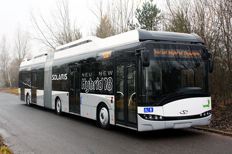 Der seriell angetriebene Urbino 18 Hybrid ist eine gemeinsame Entwicklung von Solaris und Vossloh Kiepe. Mit seiner flexiblen Antriebstechnologie ist er ganz auf Elektromobilität eingestellt. Dazu verfügt dieser Hybridbus über zwei Energiespeicher. Superkondensatoren speichern Bremsenergie für das nächste Anfahren, während Lithium-Ion-Batterien größere Energiemengen bereithalten. Damit ist ein rein elektrischer Zero-Emission-Betrieb über mehrere Kilometer möglich, beispielsweise in sensiblen Innenstadtbereichen.