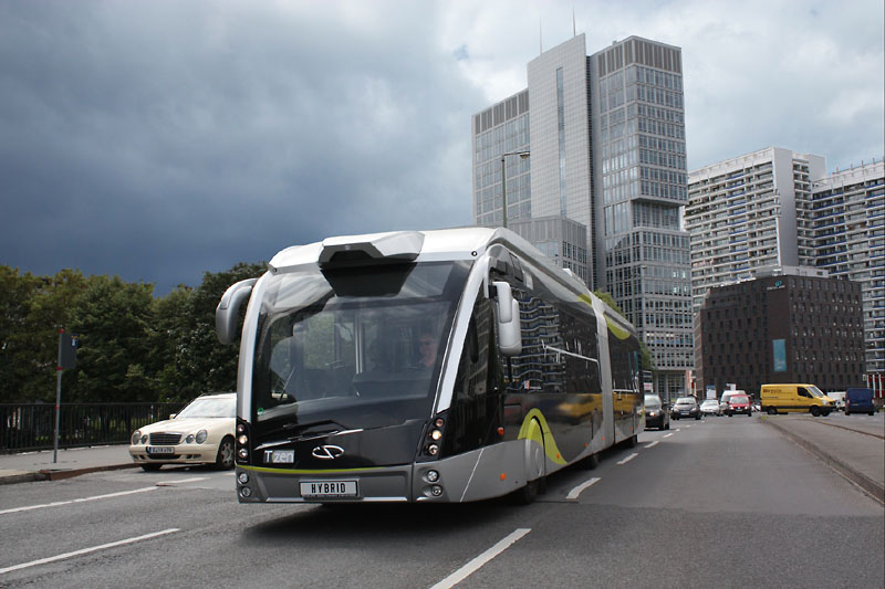 Der ausgestellte Gelenkbus Solaris Urbino 18 Hybrid ist einer von fünf Bussen dieses Typs, welche zusammen mit zehn Hybridbussen in Standardlänge sowie 16 konventionellen Dieselbussen ab 1. Oktober 2011 in Oslo eingesetzt werden. Sie gehören zur Flotte von Unibuss und verkehren für den Aufgabenträger Ruter auf Osloer Stadtbuslinien. Der Urbino 18 Hybrid ist mit einem parallelen Hybridsystem von Allison Transmission ausgestattet, in dem ein 181 kW starker EEV-Dieselmotor mit zwei je 75 kW starken Elektromotoren zusammenarbeitet. Die unterschiedlichen Motoren liefern für jede Einsatzsituation den richtigen Energiemix, beim Bremsen zurück gewonnene Energie wird in Hochleistungsbatterien für folgende Anfahrvorgänge gespeichert. Unabhängige Tests entsprechend der SORT-Messzyklen belegen Kraftstoffeinsparungen von bis zu 24%,