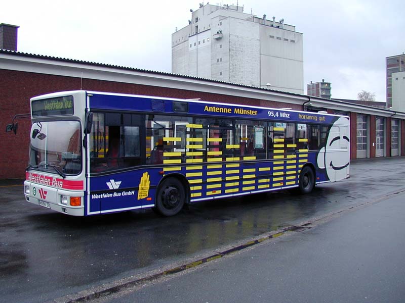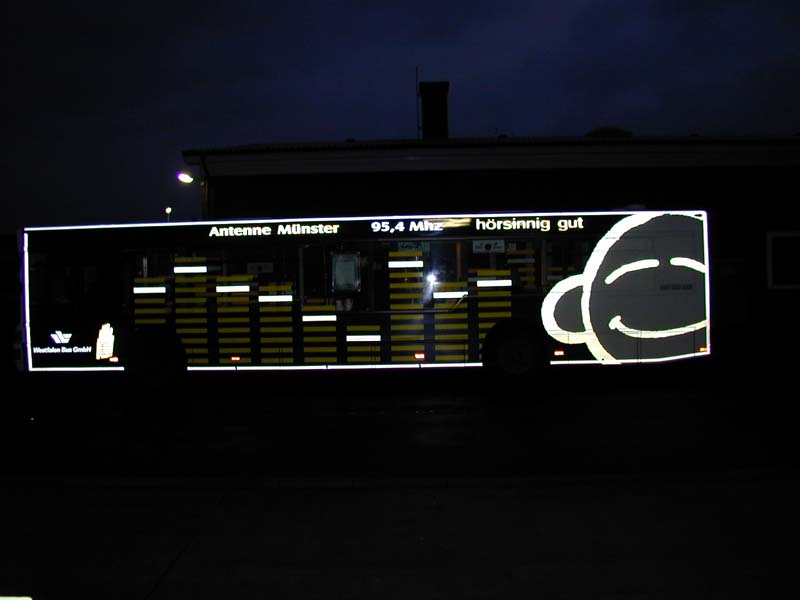 Am 21.01.2002 wurde ein Stadtbus MAN NL 202 vorgestellt, der zu Werbezwecken mit einer neuartigen Retroreflexionsfolie beklebt wurde. Die Werbung für Antenne Münster strahlt des Nachts und macht so das Fahrzeug besonders auffällig. Der Wagen mit dem Kennzeichen MS-NV 551 fährt auf der Linie 1 in Münster.