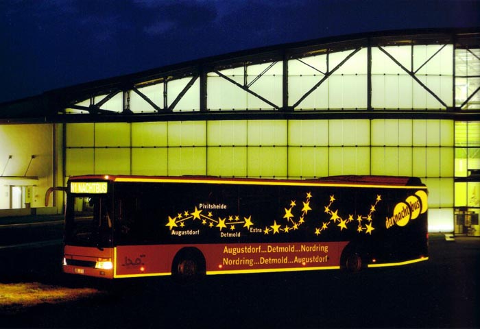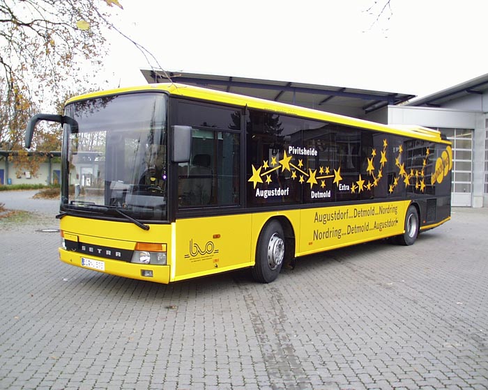Die BVO Busverkehr Ostwestfalen GmbH setzt in Detmold einen Setra S 315 NF in ungewöhnlichem Design ein. Der Wagen BI-NV 595 fährt unter anderem als Nachtbus zwischen Augustdorf und Detmold. Für diese Zwecke erhielt er eine Ganzwagenbeklebung. Auffälligstes Element ist der Einsatz einer besonderen Reflektorfolie, die zur Gestaltung der Beschriftung eingesetzt wurde - sie sorgt für mehr Sicherheit auf nächtlichen Straßen.