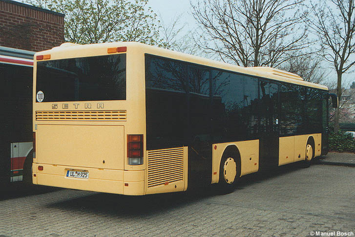 Die Busverkehr Rheinland GmbH setzt derzeit einen Vorführwagen von EvoBus Setra ein. Der auf das Kennzeichen UL-M 925 zugelassene Setra S 315 NF verfügt über die ungewöhnliche Türanordnung mit je einer einfachbreiten Tür an Front und Heck sowie einer Doppeltür in der Fahrzeugmitte.