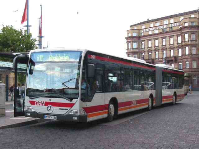 Die ORN hat seit Anfang September vier neue Niederflurgelenkbusse im Einsatz. Die Fahrzeuge sind vom Typ EvoBus MB O 530 G (Citaro) und erhielten die Wagennummern 430, 431, 432 und 439 mit den entsprechenden Zulassungen auf MZ-RN + Wagennummer. Die Aufnahmen zeigen den Wagen 430 in Front- und Heckansicht sowie den Wagen 431.