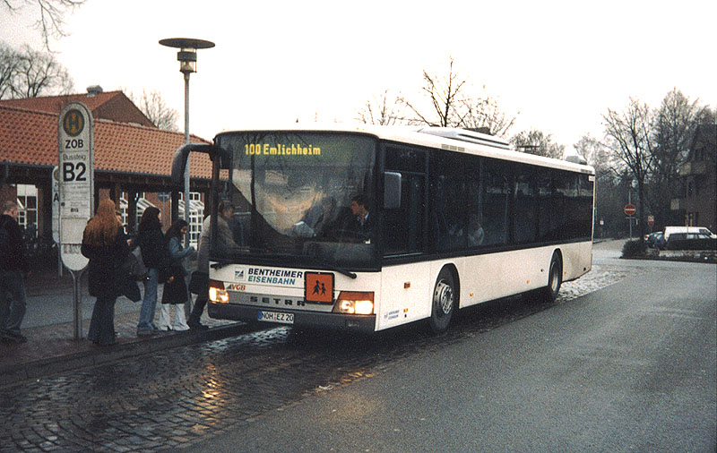 Am 23.01.2004 sind drei neue Niederlurbusse für die Bentheimer Eisenbahn das erste Mal auf Linie gegangen. Das besondere daran ist, dass es sich um die ersten Niederflurbusse im Fuhrpark der BE handelt. Ausgestattet sind die Setra S 315 NF erstmalig auch mit einem Automatikgetriebe, einem festen Rollstuhl- und Kinderwagenplatz sowie einer Rampe für leichteren Ein- und Austieg an der Hinterür. Darüber hinaus erfüllen die Motoren die Euro III-Norm, die Busse sind mit einer Klimaanlage und 44 Plätzen ausgerüstet. Nachträglich sollen zur Vorbeugung vor Vandalismus Kameras installiert werden.