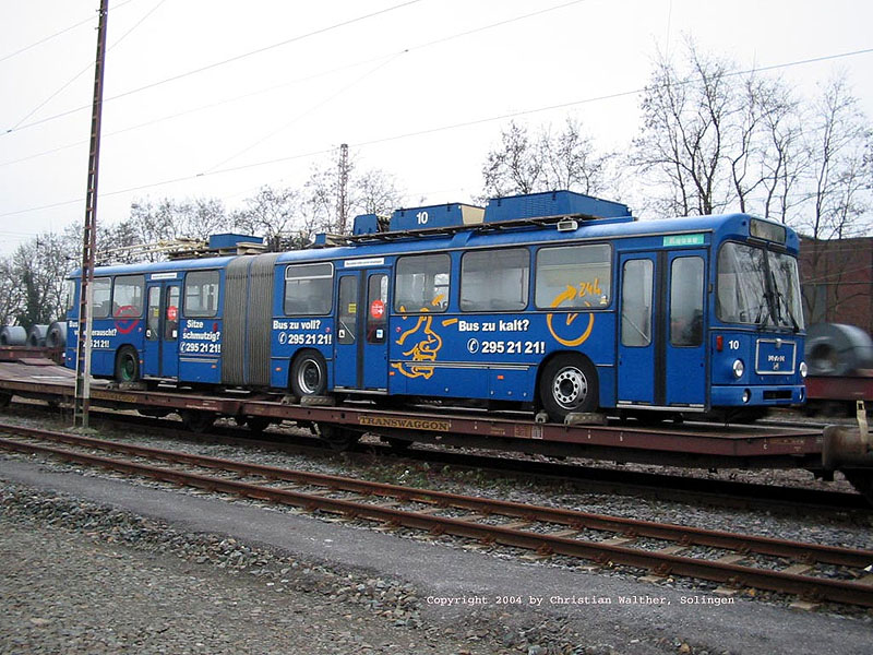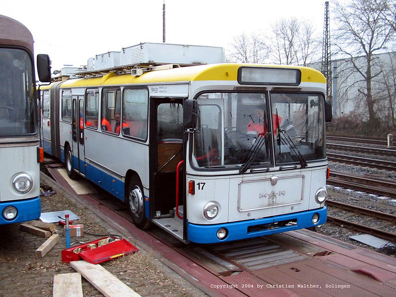 Von Montag, 26.01., bis Mittwoch, 28.01.2004, wurden weitere abgestellte Obusse aus Solingen für die Bahnfahrt nach Sarajevo nach Hilden überführt. Insgesamt wurden 16 Obusse nach Sarajevo geschickt. Dies sind die Wagen 2, 3, 4, 6, 7, 10, 13, 17, 18, 19 und 21 vom Typ MAN/Kiepe SG 200 HO sowie die Fahrzeuge 30, 31, 41, 53, 54 und 59 vom Typ MAN/Kiepe SL 172 HO.