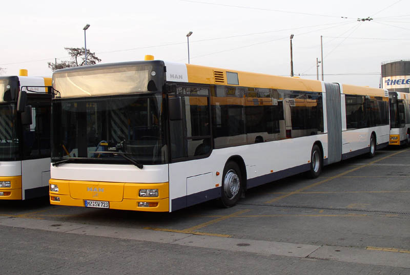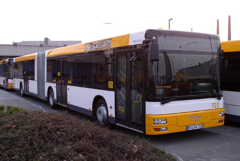 Die Mainzer Verkehrsgesellschaft mbH (MVG) hat am letzten Freitag ihren Fuhrpark um acht weitere Fahrzeuge des Typs MAN A23 (NG 313) verstärkt. Die Fahrzeuge erhielten die Betriebsnummern 718 bis 725, die Zulassungen lauten dementsprechend MZ-SW xxx. Damit verfügt die MVG über nunmehr 33 Fahrzeuge dieses Omnibustyps. Die auch in dieser Lieferung wieder dreitürigen Fahrzeuge wurden in den bekannten MVG-Hausfarben ausgeliefert und verfügen, wie auch schon die letzte Serie, über LED-Anzeigen.