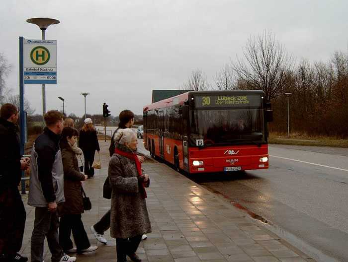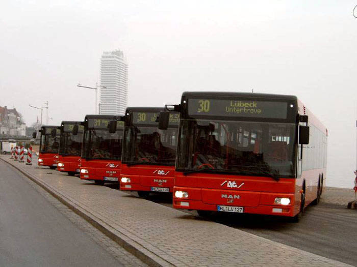 Am 27.01.2005 hat die LVG endlich die für Ende 2004 vorgesehene Serie von fünf MAN 15-Meter-Neufahrzeugen mit eigenem Personal aus Salzgitter überführen können. Die Wagen vom Typ A25 (NÜ 313-15m) sind kostensparend in einer vom Hersteller angebotenen Standardvariante geordert und nur in notwendigen Details angepaßt worden. Die Wagen haben Bode-Außenschwingtüren in der Anordnung vMh und einen 310 PS-Motor in Kombination mit einem Voith 864.3E-Getriebe. Bereits einen Tag nach Lieferung fand in kleiner Runde ein Fototermin statt, nachdem die Wagen mit LVG-Logos versehen worden sind. Zugelassen auf HL-LV 124 bis 128 tragen die Wagen - abweichend von der zuletzt angewandten Praxis, dass die Wagennummer dem Kennzeichen um 100 verringert entspricht - auch die Wagennummern 124 bis 128. Hierdurch entgeht man auch dem Problem, dass es noch einen MAN SD 202 mit der alten Wagennumer 25 gibt.