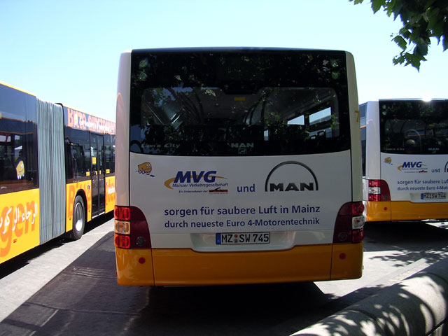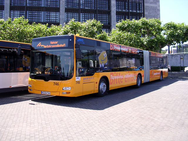 Die Neufahrzeuglieferung 2006 der Mainzer Verkehrsgesellschaft ist eingetroffen. Es handelt sich um 13 MAN A23 (NG 313 Lion's City), wovon ein Fahrzeug als Ersatz für Wagen 690 dient, der nach seinem Unfall mit der Hafenbahn im Dezember 2005 ausgemustert wurde (Meldung vom 12.12.2005). Die Fahrzeuge wurden als Wagen 734 bis 746 eingereiht und am 24.05.2006 auf die Kennzeichen MZ-SW + Wagennummer zugelassen.