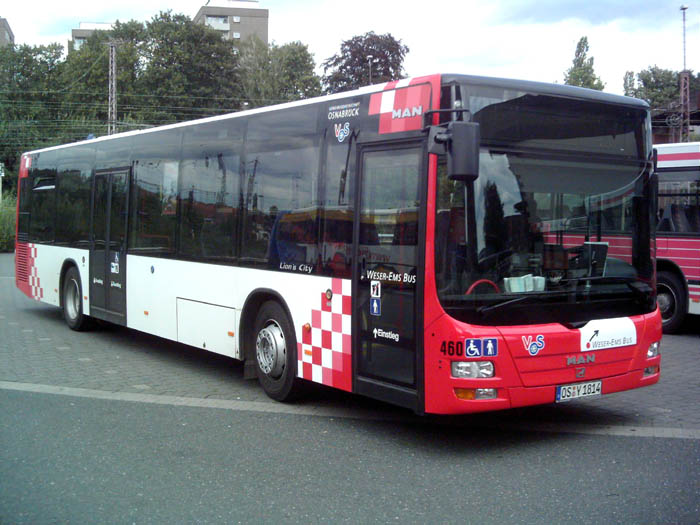 Die Weser-Ems Busverkehr GmbH (WEB) mit Sitz in Bremen hat 13 neue MAN Lion's City erhalten. Die Fahrzeuge im Osnabrücker VOS-Kachelmusterdesign erhielten die Wagennummern 451 (Zulassung noch unbekannt), 452 (HB-WE 483), 453 (OS-Y 1813) sowie 460 bis 469 (OS-Y 1814 bis 1823). Allerdings sind bislang noch nicht alle der über die MAN-Niederlassung Osnabrück ausgelieferten Fahrzeuge mit Kennzeichen versehen worden.