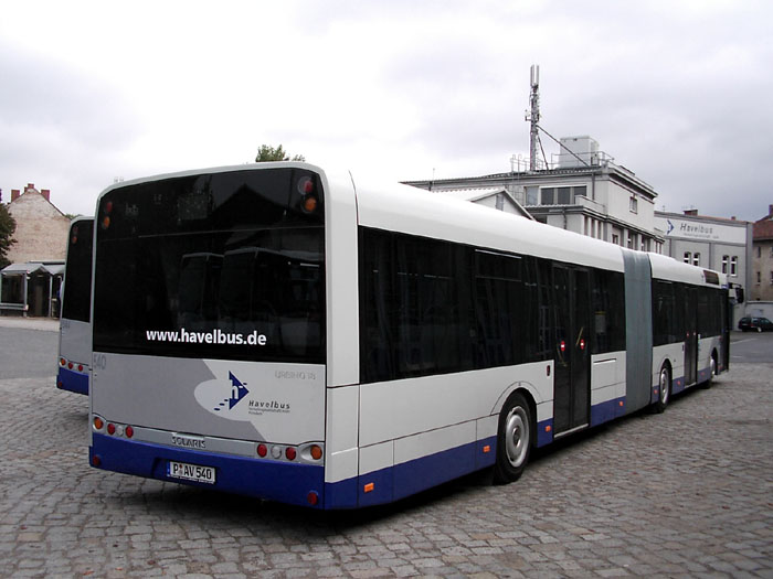 Am 29.09.2006 wurden die ersten drei Solaris Urbino 18 für die Havelbus Verkehrsgesellschaft mbH (HVG) in Potsdam angeliefert. Sie sind die ersten Fahrzeuge diesen Typs im Land Brandenburg. Die Wagen sind mit einen 314 PS-DAF-Motor und Voith-Automatikgetriebe ausgestattet. Bei der HVG wurden sie unter den Nummern 540, 542 und 544 mit den entsprechenden Zulassungen auf P-AV + Wagennummern eingereiht und werden vom Betriebshof Stahnsdorf aus eingesetzt. Die Aufnahmen rechts zeigen alle drei neuen Gelenkbusse sowie den Wagen 540 in zwei Nahansichten, das Bild unten den Innenraum des Wagen 542.