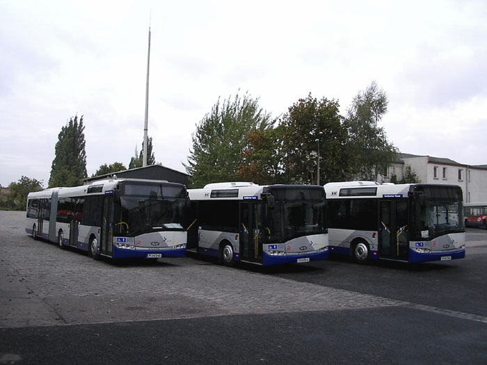 Die Magdeburger Verkehrsbetriebe GmbH (MVB) nahm am 29.09.2006 elf Busse vom Typ Urbino 12 des polnischen Herstellers Solaris Bus & Coach S.A. Bolechowo-Osiedle in Betrieb. Die während einer Presseveranstaltung zum ersten Mal offiziell vorgestellten Urbino 12 verfügen über LED Anzeigen, drei Türen, Klapprampe an Tür 2 und einen DAF-Motor mit 183 KW nach der Euro 5-Norm. Sie wurden unter den Wagennummern 3701 bis 3711 und den Kennzeichen MD-VB 138 bis 148 eingereiht. Auf den Bildern sind drei der elf Fahrzeuge während der offiziellen Übergabe am Rothehornpark zu sehen.