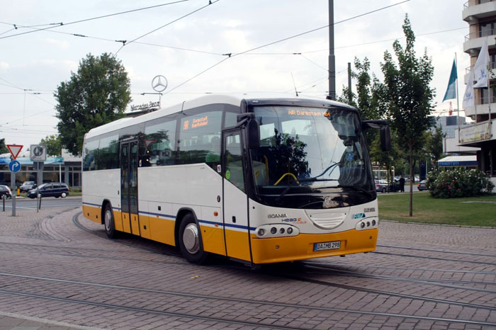 Auf der Linie zum Frankfurter Flughafen wird seit einigen Tagen ein als Wagen 298 geführter Scania Irizar Intercentury eingesetzt. In die neue HEAG-Lackierung sind bisher einige Solowagen umlackiert worden, dabei blieb der breite blaue Zierstreifen über den Fenstern erhalten. Es handelt sich um die MAN A21 mit den Nummern 365 und 367 sowie den EvoBus MB O 530 (Citaro) mit der Nummer 370.