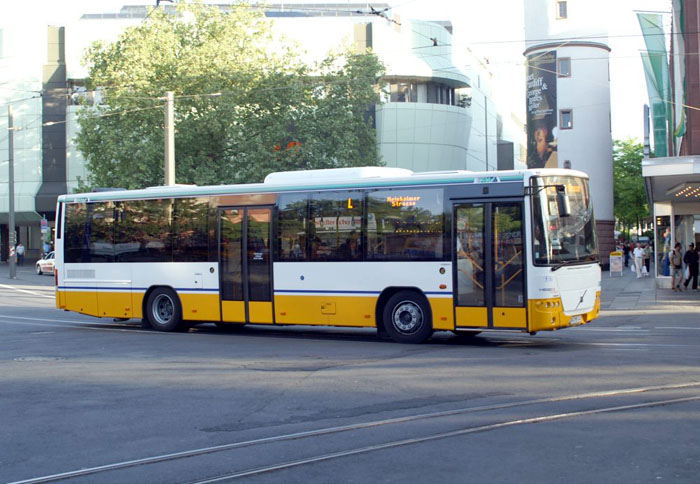 - die dreitürigen Volvo 7700 die Nummern 321 bis 323,