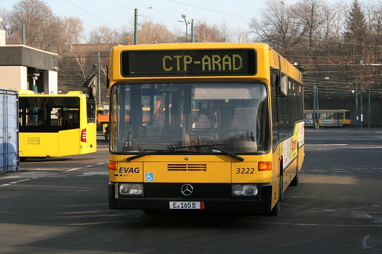 Weiter werden 15 Fahrzeuge aus Essen nach Arad (Rumänien) abgegeben. Davon sind sieben Wagen Solofahrzeuge und der Rest Gelenkwagen. Letzte Woche Dienstag sind bereits die Wagen 3221 bis 3223 nach Arad überführt worden. Der Rest soll in Kürze folgen, die genauen Wagennummern sind dabei noch nicht bekannt. Allerdings sollen nur Fahrzeuge mit Euro 2-Motoren nach Arad abgegeben werden. In den beiden Aufnahmen sind die drei bereits nach Rumänien überstellten Fahrzeuge noch auf dem Betriebshof Stadtmitte der EVAG zu sehen.