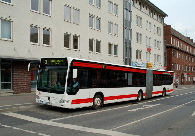 Für die Lieferung der zehn Solo- und eines Gelenkwagen wurde die Firma EvoBus mit den Produkten Mercedes-Benz O 530 (Citaro) und O 530 G ausgewählt. Ausgestattet mit 286 bzw. 299 PS-starken Sechszylinder-Motoren erfüllen die Fahrzeuge dank AdBlue-Technik die Abgasnorm Euro 4 und tragen somit zur weiteren Verbesserung der Luftqualität in der Hansestadt bei. Für die Fahrgastinformation sorgen neben Haltestellenansage und -anzeige auch die großflächigen, gut lesbaren FlipDot-Anzeigen mit LED-Beleuchtung.