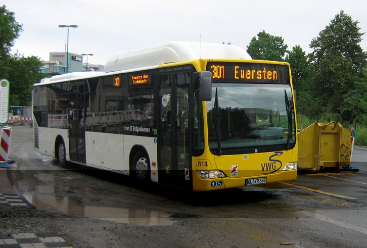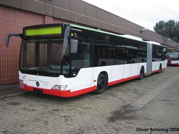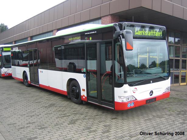 Die NordBus GmbH in Oldenburg, eine Tochtergesellschaft der Verkehr und Wasser GmbH, hat einige neue EvoBus MB O 530 CNG (Citaro) mit Erdgasantrieb erhalten. Die Aufnahme zeigt mit dem auf OL-YR 839 zugelassenen Wagen 814 eines der Neufahrzeuge.