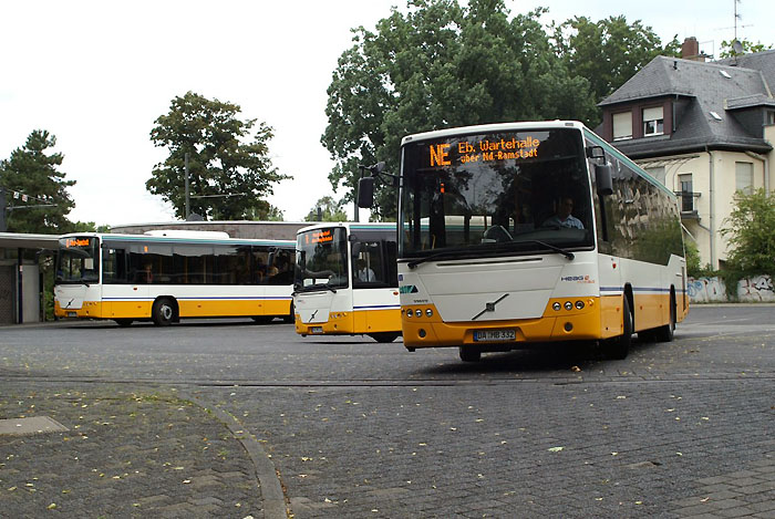Zudem sind unter den Kennzeichen DA-MB 332, 334 bis 337 und 339 weitere Volvo 8700 LE im Einsatz. Drei dieser Busse konnten mit den Wagen 332, 334 und 339 am 01.08.2008 am Böllenfalltor in Darmstadt aufgenommen werden (Aufnahme rechts außen).