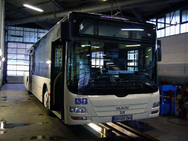 Die Oberbergische Verkehrsgesellschaft AG (OVAG) in Gummersbach hat im November ihre fünf neuen MAN A21 (NL 283 Lion's City) erhalten. Die Fahrzeuge wurden auf die Kenzeichen GM-OV 264 bis 268 zugelassen und haben entsprechend die Wagenummern 264 bis 268 erhalten. Es handelt sich um die ersten Neufahrzeuge der OVAG seit 2005. Auf den Bildern sind der Wagen 264 noch vor der Aufrüstung und der Wagen 265 auf der Linie 301 an seinem erstem Einsatztag in Bergneustadt Zentrum zu sehen.